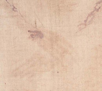 11 - Le macchie d'acqua L'acqua, usata nel 1532 per spegnere le fiamme, ha lasciato degli aloni lmgo tutto il telo.